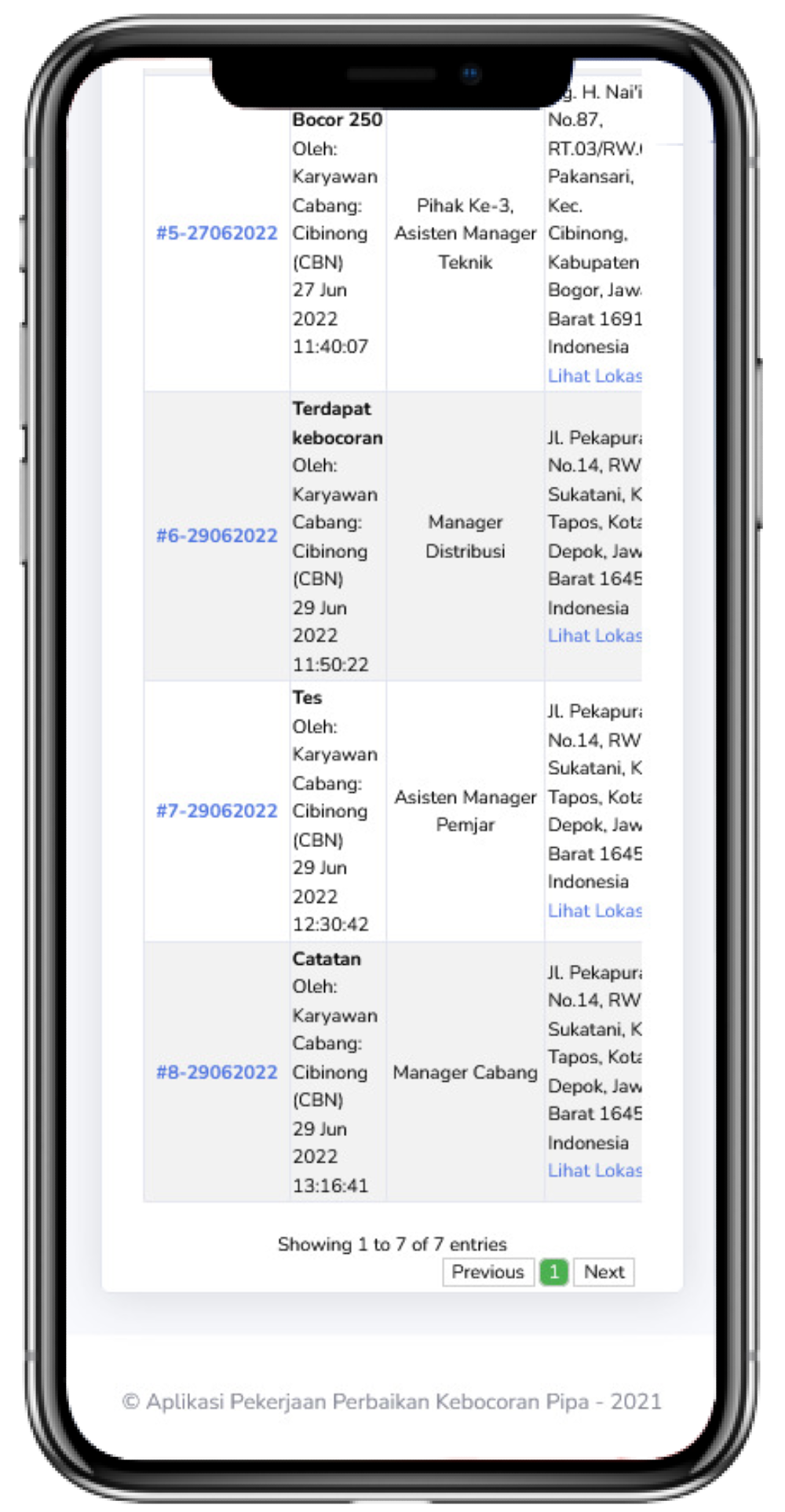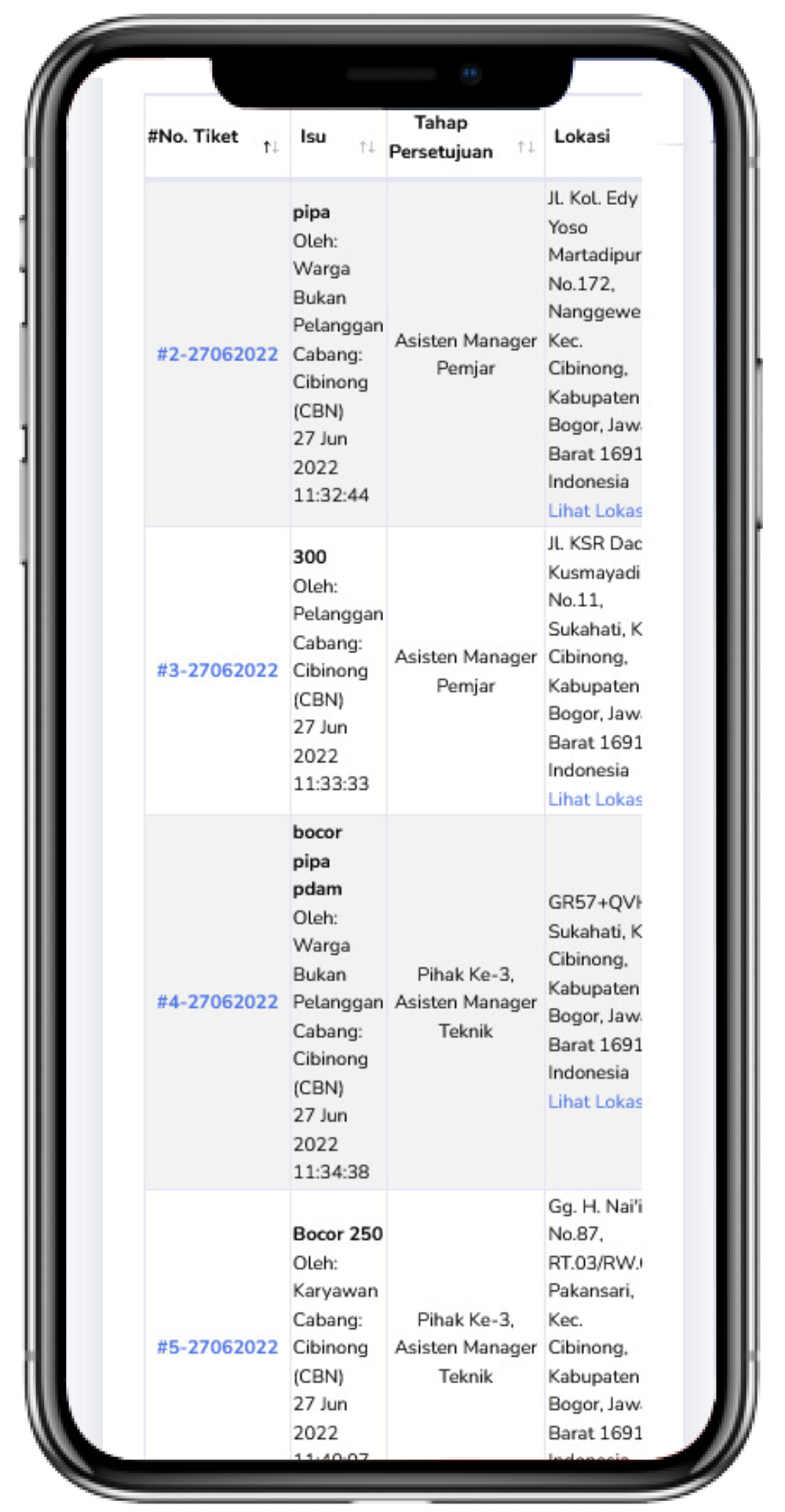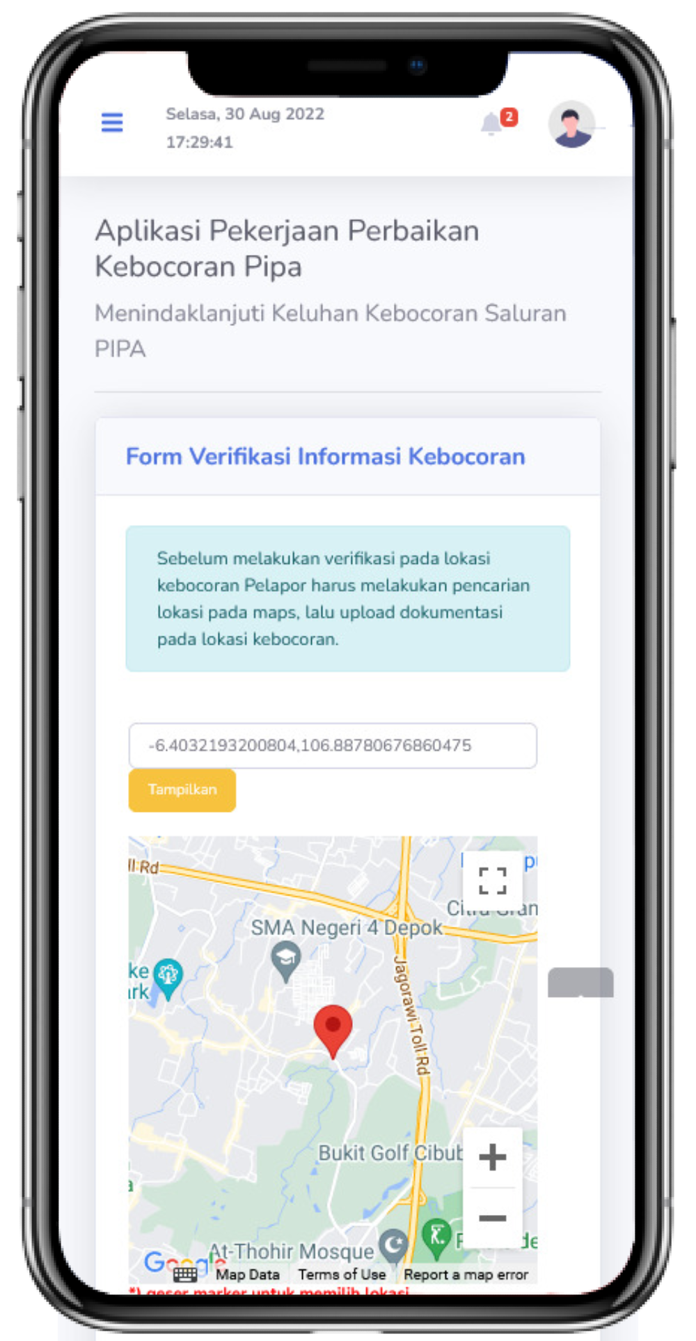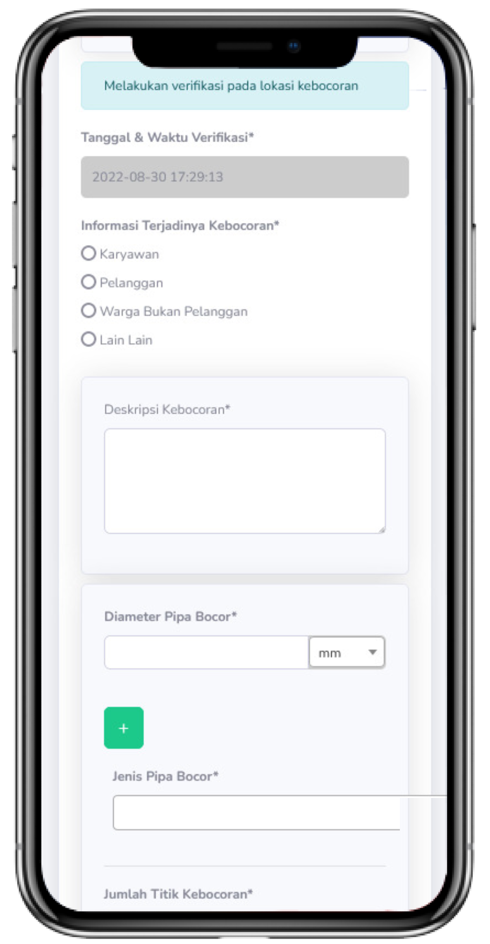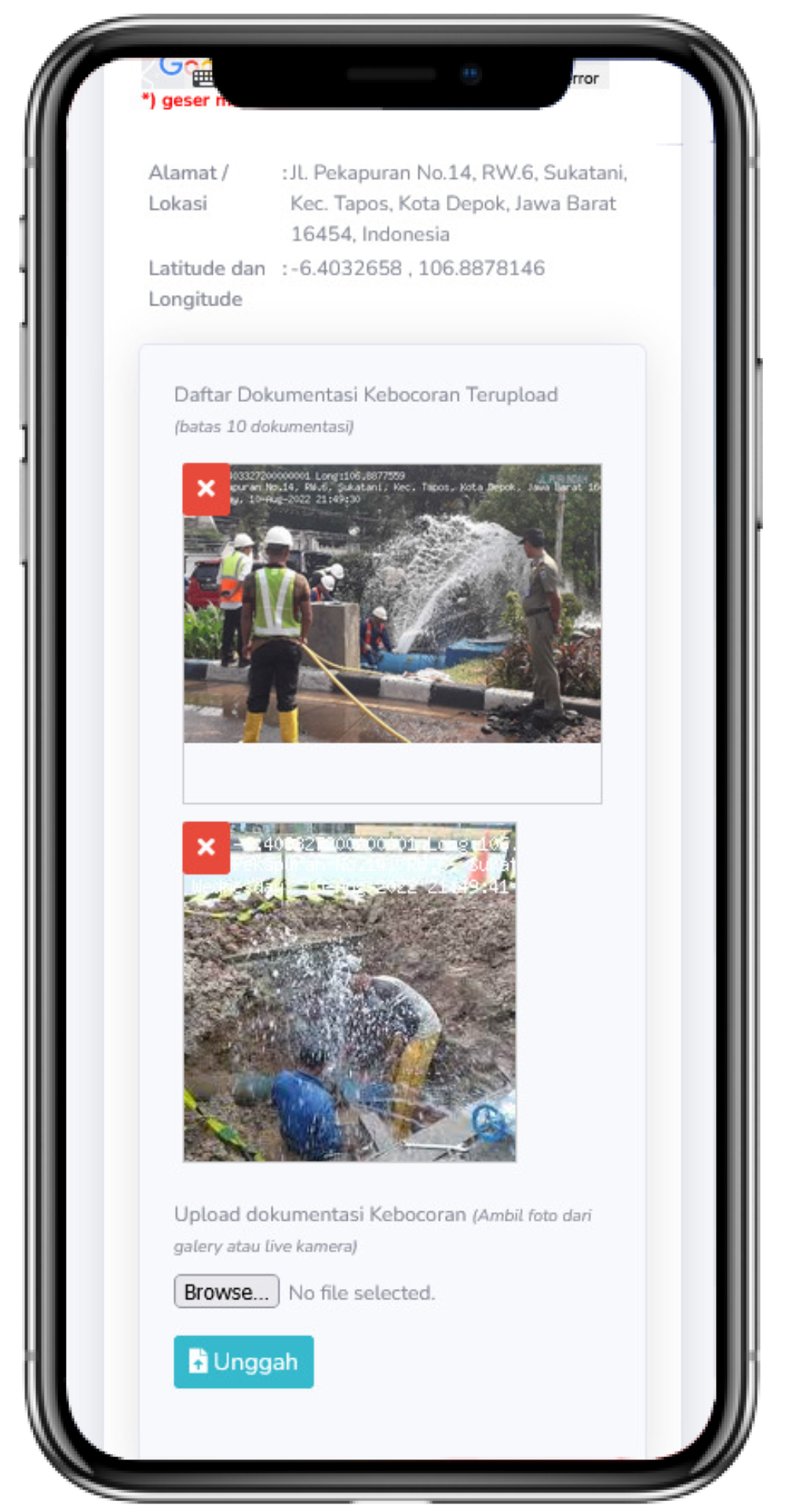 Complaint Form 'Melaporkan Lokasi Kebocoran Pipa PDAM Tirta Kahuripan Yang dilakukan oleh Karyawan Teknik'